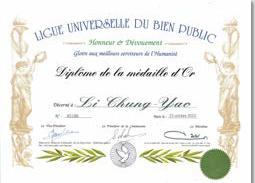 李重耀榮獲世界上歷史最悠久的「全球公益聯盟」頒發金質榮譽勳章。 |